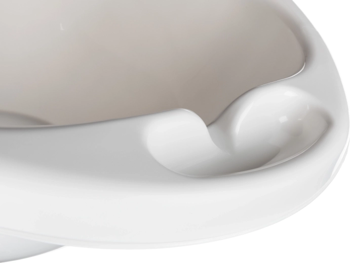 Bløde linjer og gennemtænkt formgivning støtter barnets korrekte stilling, mindsker glid og øger komforten under badet fra fødslen.