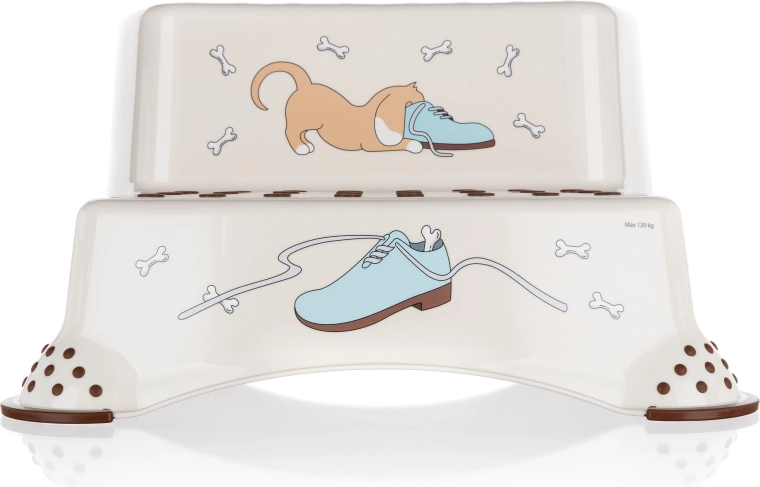 Praktisk totrins skammel til børn med motivet DOG gør daglig hygiejne og adgang til højere steder lettere. Takket være skridsikre overflader foroven og forneden samt en stabil, bred base er den sikker både på badeværelset og toilettet. Let, men robust design med bæreevne op til 120 kg egnet til både børn og voksne.