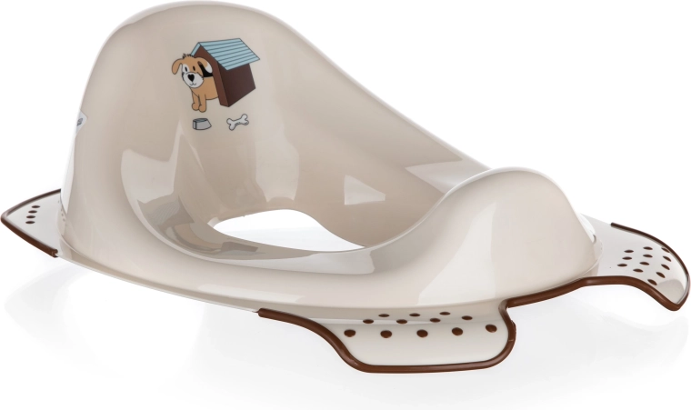 DOG WC-sædet er et specielt overlag til børn, der begynder at gå selv på toilettet. Overlægget til WC-sædet med skridsikker overflade er en formindsket kopi af et almindeligt WC-sæde og forhindrer, at barnet glider ned i toilettet. WC-sædet er lavet af blød plast, er nemt at rengøre, meget stabilt og egnet til de fleste toiletter. Maks. belastning 25 kg. Mål: ca. 30 x 40 x 15 cm. Uden BPA.