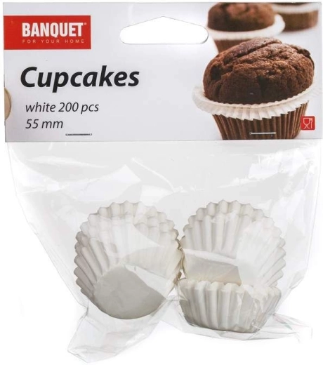 Banquet bageforme er den perfekte hjælper til bagning af muffins og cupcakes. Pakken indeholder 200 hvide papirforme, som giver et elegant udseende og stabilitet til dine søde kreationer.
