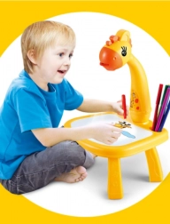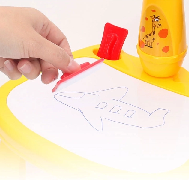 Denne børne-tegneprojektor projicerer billeder direkte på tegnefladen, så barnet vælger et motiv, tegner det op og farvelægger det bagefter. Læring sker gennem leg – børn øver pennegreb, stregføring og farvegenkendelse. Det stabile bord med girafhoved er let og bærbart, så det fungerer perfekt både derhjemme og på rejser.