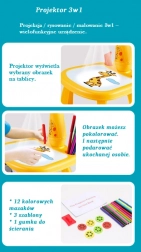 Projicerede billeder guider børnene trin for trin. Det er nok at følge konturen og derefter farvelægge – ideelt for begyndere fra 3 år.