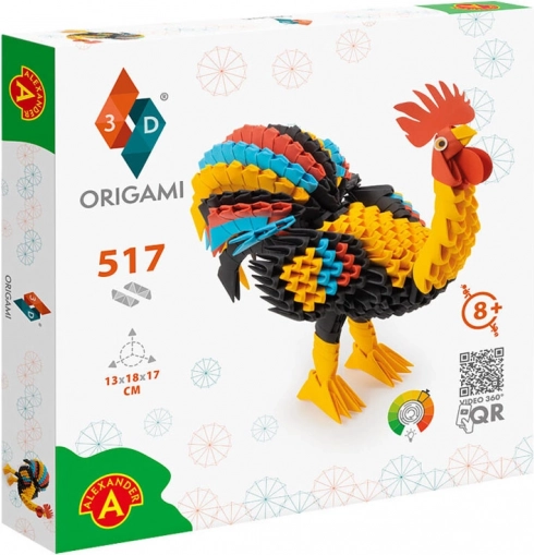 Dette gennemarbejdede ORIGAMI 3D-sæt gør det muligt at samle en smuk, farverig hane af modulære papirdelementer. Takket være den patenterede form med tydelig bukkelinje skaber du basismodulet i tre enkle trin og samler delene let uden lim. I pakken finder du også en detaljeret trin-for-trin-vejledning samt en videoinstruktion, der guider dig gennem hele processen.
