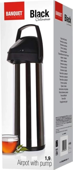 Elegant termoflaske i rustfrit stål Culinaria med en kapacitet på 1,9 liter er ideel til opbevaring af varme og kolde drikke. Takket være den pumpende mekanisme er påfyldning af drikke bekvem og nem.