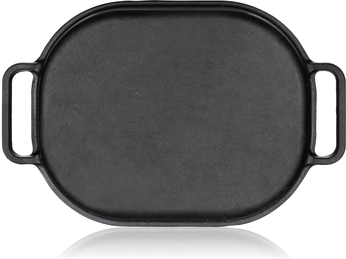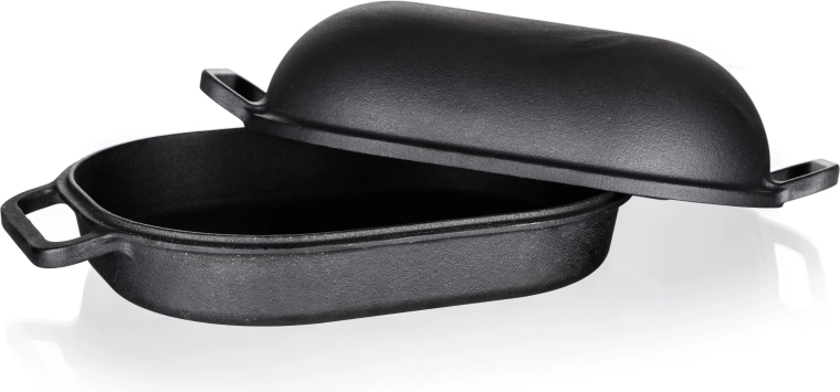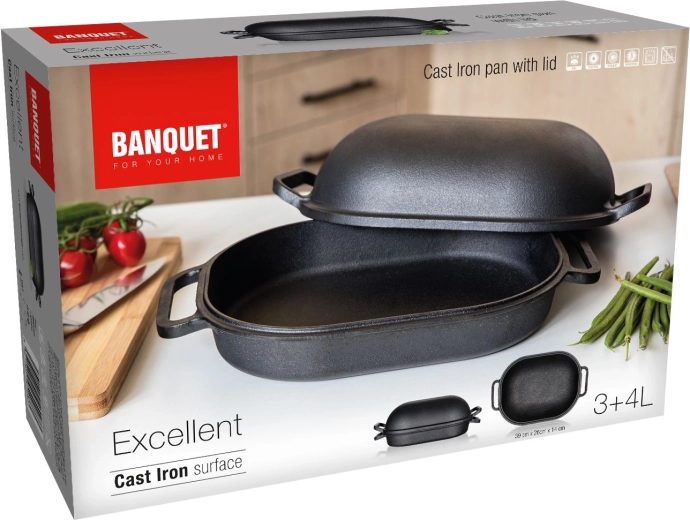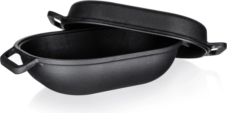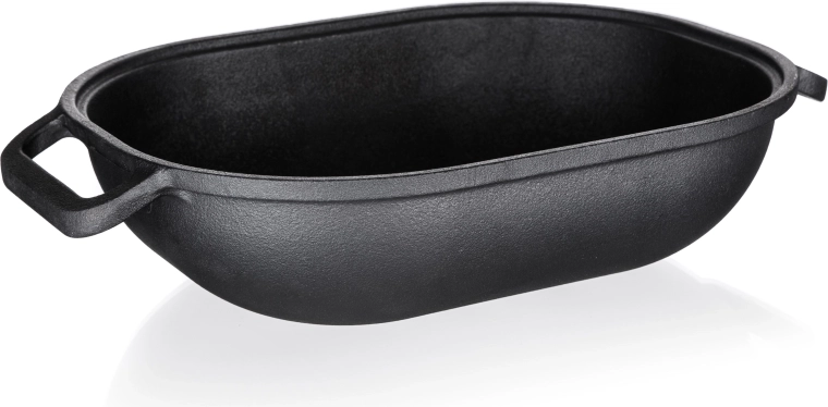 Oplev magien ved traditionel madlavning med en oval støbejernsbradepande med låg. Med en kapacitet på 3 + 4 liter og mål på 39 x 26 x 14 cm er den et ideelt valg til saftig stegning, braisering og sautering. Støbejernsmaterialet er kendt for sin fremragende evne til at holde på og fordele varmen jævnt, hvilket sikrer flotte resultater hver gang.