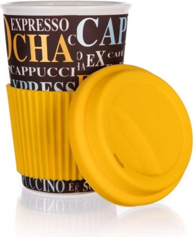 Keramisk krus med silikone­låg Go, 400 ml, Coffee