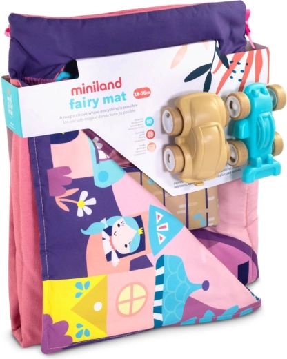 Barnet kan slippe fantasien løs i feernes rige! Den unikke sansemåtte fra Miniland lader barnet udforske den magiske verdens kroge ved hjælp af små biler, som er fastgjort til måtten.