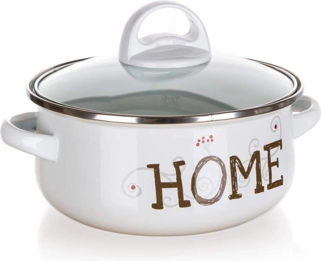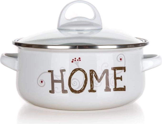 Praktisk sæt emaljerede gryder i hvid farve med HOME-dekor og glaslåg – ideelt til daglig madlavning. Velegnet til gas, el, glaskeramik og induktion, og kan bruges i ovn uden låg. Holdbart emaljeret stål, behagelige metalgreb og nem oversigt takket være de gennemsigtige låg. Væg- og bundtykkelse 0,6 mm.