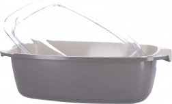 Det transparente glaslåg gør det muligt at kontrollere stegningen uden varmetab og fugttab. Takket være den robuste konstruktion er bradepanden egnet til ovn, har fremragende varmeledning og holder på varmen længe. Det elegante creme-grå design passer ind i ethvert køkken.