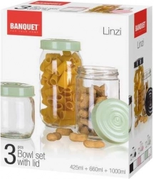 Sættet med 3 LINZI-dåser med en kapacitet på 425 ml, 660 ml og 1000 ml kan bruges til stort set alle fødevarer, hvad enten det er krydderier, pasta eller sukker. Glaskrukken har et tætsluttende låg i granitlook.