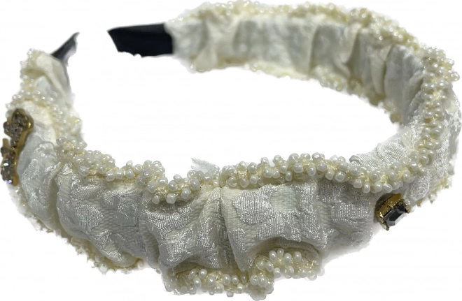 Elegant hårbøjle med hvide perler og tekstureret design, der giver din stil et eksklusivt look.