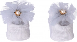 Et charmerende gavesæt 3-i-1 til nyfødte, som indeholder to behagelige hårbånd og matchende sko/strømper, alt i en blid lysegrå farve. Ideelt til dåb, velkomst af baby eller babyshower. Takket være det bløde og elastiske materiale på hårbåndene trykker de ikke på babyens hoved, og den stilfulde pynt giver ethvert outfit et særligt præg. Sættet leveres i en dekorativ gaveæske, klar til at give med det samme.