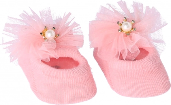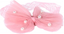 Hårbånd af lyserød blonde med en dekorativ tylsløjfe og perler. Ideelt til at fremhæve din babys frisure.