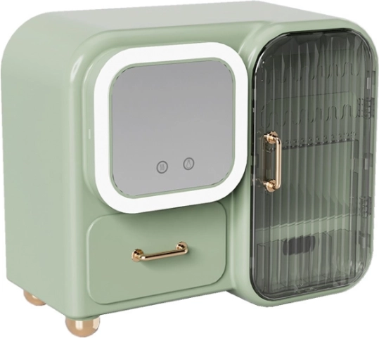 Den lysegrønne udførelse i kvalitetsplast giver ikke kun elegance, men også rigelig plads til dine kosmetikartikler og smykker.