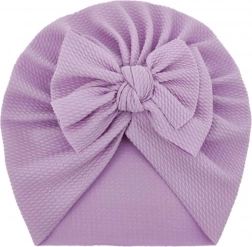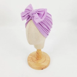 Stilfuld børneturban med stor sløjfe i en sart lilla nuance, ideel til hverdagsbrug og festlige lejligheder. Takket være den bløde, elastiske kvalitet former den sig behageligt efter hovedet, holder faconen og giver let varme i forårs‑ og efterårssæsonen. Et oplagt valg som praktisk og nuttet accessory og som gave til små modeprinsesser.