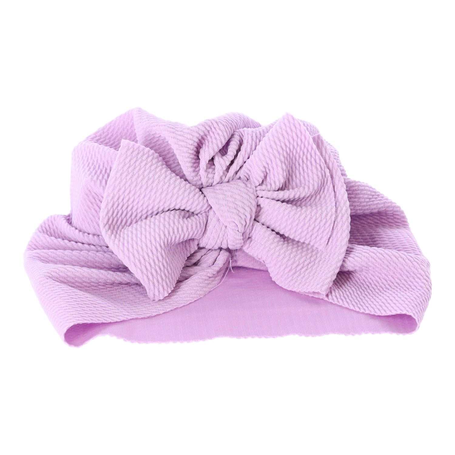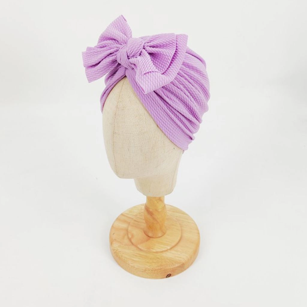 Denne minimalistiske og tidløse turban til babyer og tumlinger begejstrer både i komfort og udseende. Den teksturerede strik er blød at røre ved, elastisk og uden unødige sømme, så turbannen er nem at tage på og ikke trykker. Den store dekorative sløjfe foran giver outfittet kant og sødme.