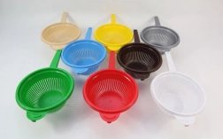 Skimmer fremstillet af plast af høj kvalitet. Udstyret med to komfortable håndtag, som gør det nemt at tørre dine produkter. Har en speciel fod, der stabiliserer dens position på bordpladen. Velegnet til at dræne pasta samt til at tørre frugt og grøntsager. Uundværlig i ethvert køkken.
