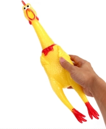 Sjovt legetøj til hunde i kyllingeform, der afgiver en lyd, når det presses, og sikrer god underholdning for dit kæledyr. Fremstillet af høj kvalitet gummi materiale, der garanterer holdbarhed under intens leg.