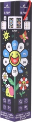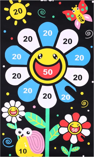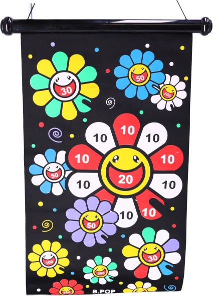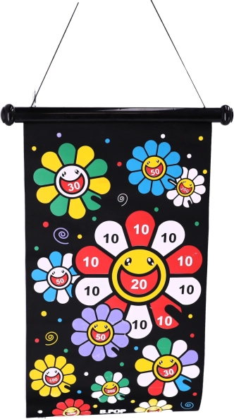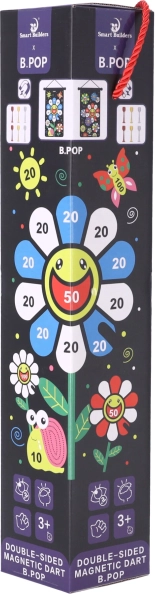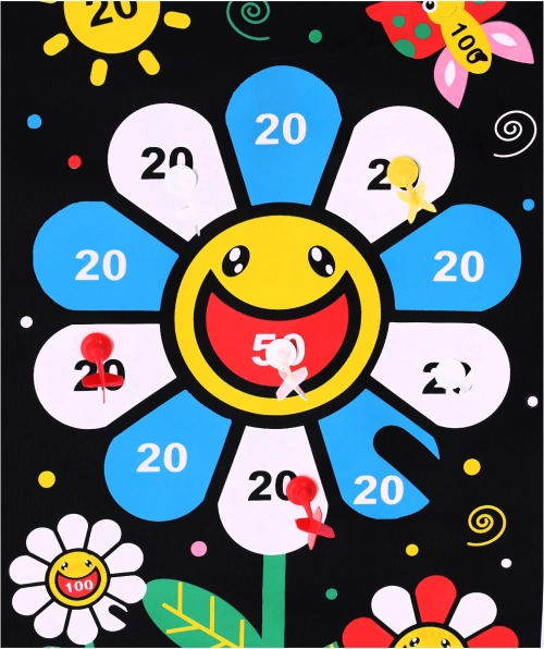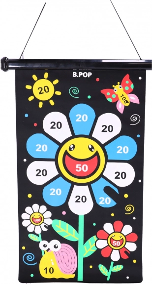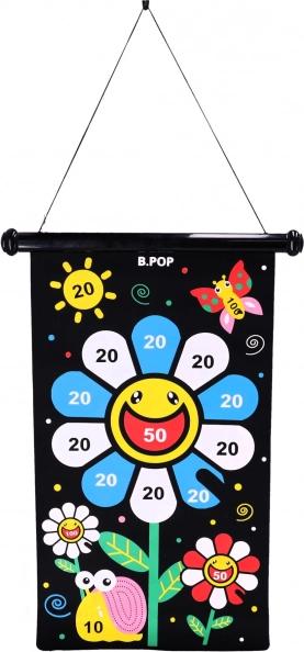 Sikkert, dobbeltsidet magnetisk pilspil bringer masser af sjov for både børn og voksne. Spillet går ud på at kaste pile præcist på markerede punkter på pladen. Sættet indeholder 6 magnetpile i tre farver: hvid, gul og rød. Den sorte stofplade er dekoreret med en farverig blomst, der hjælper med at øve færdigheder og koncentration. Muligheden for at rulle pladen gør det nemt at opbevare og transportere.