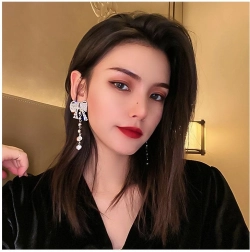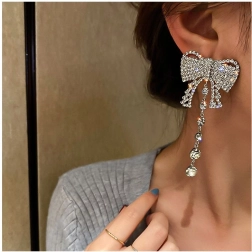 Øreringe i sløjfeform med hængende krystaller tilføjer et elegant og sofistikeret look til ethvert outfit.