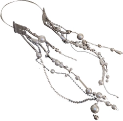 Hårbåndet giver et sofistikeret look takket være de kunstige perler og kæder.