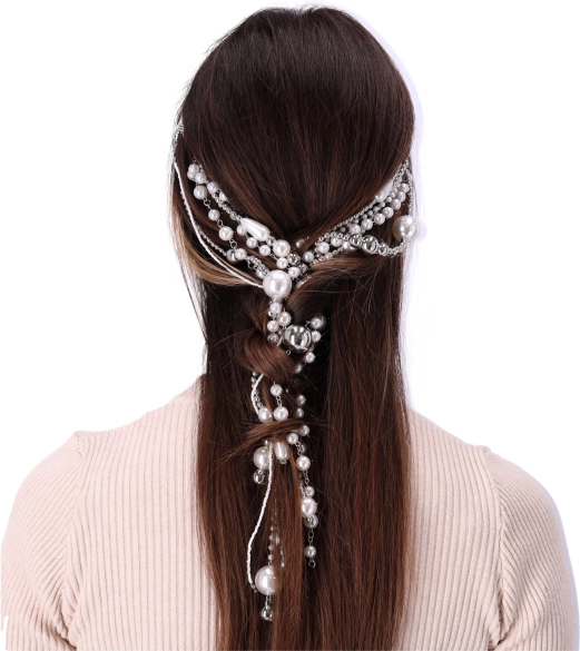Det perfekte tilbehør til både hverdag og festlige lejligheder, dekorativt hårbånd giver din stil et subtilt touch af elegance. Denne enkle hårpynt med kunstige perler og kæder er ideel til alle typer frisurer, fra avancerede opsætninger til løst bølgende hår. Hårbåndet holder let uregerlige lokker væk fra ansigtet og øger komforten ved brug. Det er også i universel størrelse og passer derfor til alle.
