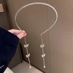En smykkedetaljeret hårbøjle med fine sommerfugle, der giver dit hår elegance.