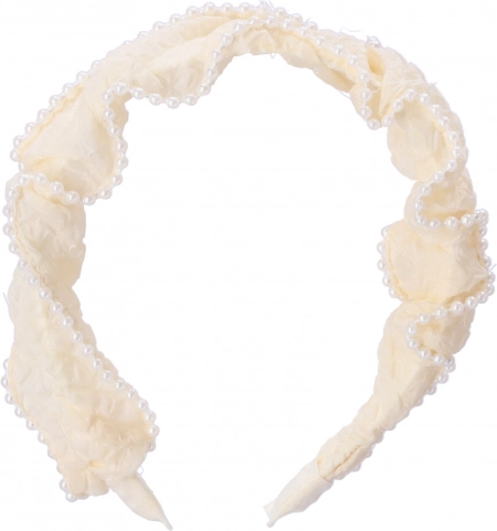 Denne hvide hårbøjle med små perler er et stilfuldt accessory, der løfter selv et enkelt outfit. Den tekstile overflade med rynkeeffekt og den diskrete perlekant virker elegant, men stadig afdæmpet. Matcher flot med både løst hår, hestehale og knold.
