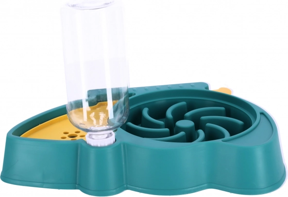 Skålen med en praktisk vanddispenser er den ideelle løsning for kæledyrsejere, der vil sikre deres kæledyr konstant adgang til frisk vand, selv når de er væk. Den nederste del af produktet er udstyret med en skål, der sænker fødeindtaget og dermed hjælper med at forebygge fordøjelsesproblemer forårsaget af for hurtig spisning. Den er formet til at forlænge den tid, dit kæledyr bruger på at spise. Skålen har et labyrintmønster, som giver dit kæledyr en udfordring. Størrelsen på de placerede godbidder afgør sværhedsgraden. Dens ergonomiske form gør desuden rengøringen lettere.