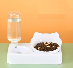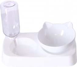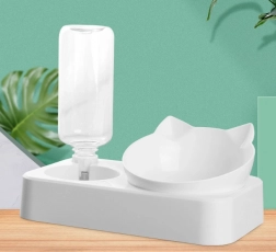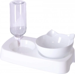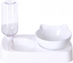 Skål til hunde og katte 2-i-1 med automatisk vanddispenser – hvid
