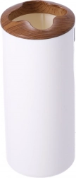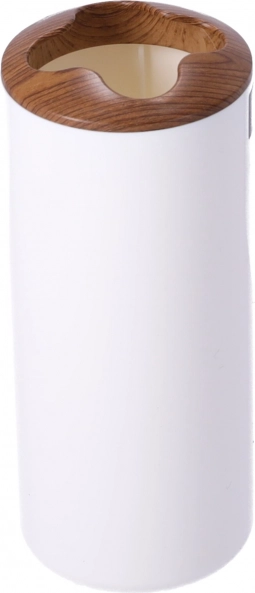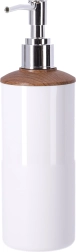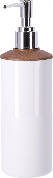 En moderne dispenser med et rent hvidt korpus og en trædetalje sikrer præcis og sparsom dosering af flydende sæbe. Den er nem at efterfylde og passer perfekt sammen med de øvrige elementer i sættet.