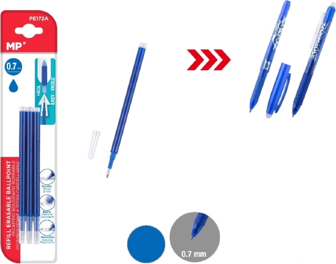 Refills til viskelige kuglepenne MP 3 stk. 0,7 mm - blå