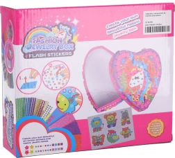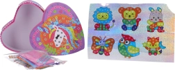 Den hjerteformede æske har påmalede tal, hvor de tilsvarende klistermærker sættes på.