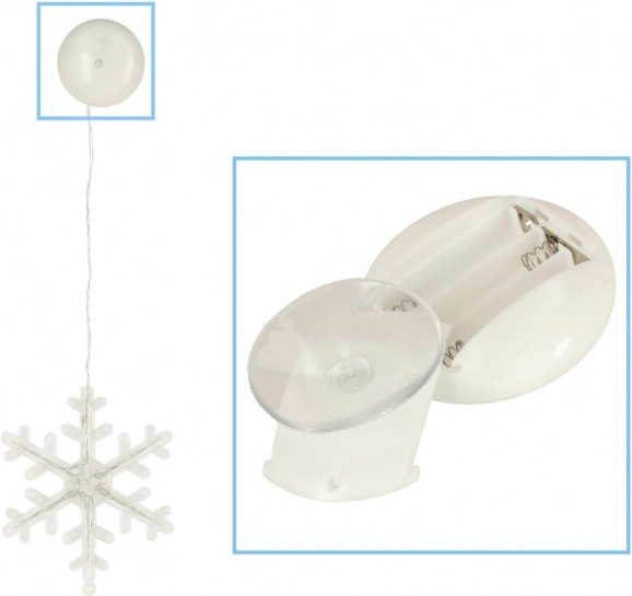 LED-dekorationen i form af et snefnug er et perfekt valg til vinterpyntning af hjemmet. Det varme hvide lys lyser blidt op om aftenen og skaber en behagelig, festlig atmosfære. Med sugekoppen fastgør du den nemt på vinduer, døre eller glatte vægge.