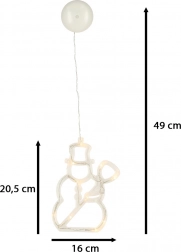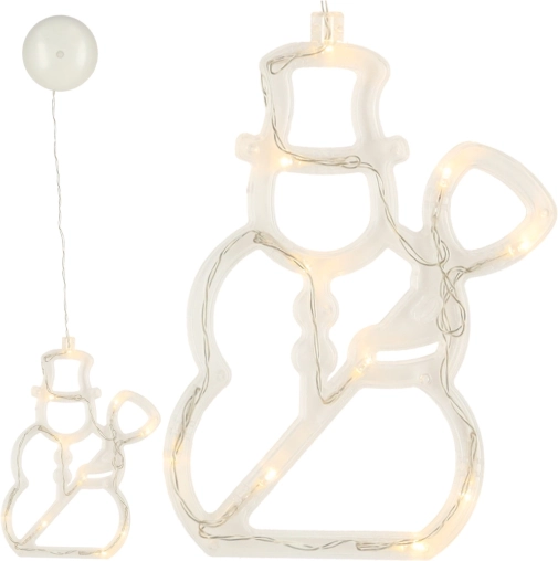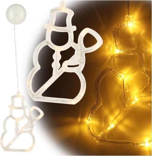 Den stilfulde lysdekoration med snemand er ideel til udsmykning af vinduer, døre og glatte vægge. Integrerede LED-dioder med varmt hvidt skær giver et hyggeligt lys til interiøret og understreger julens magi.