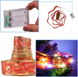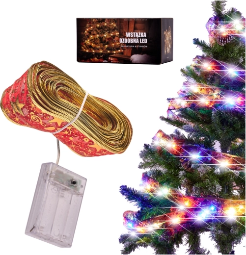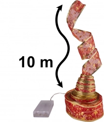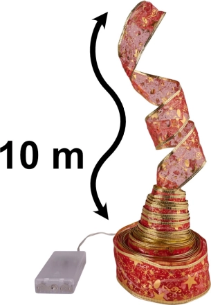 Dette julebånd kombinerer et dekorativt look med lyseffekt. Det guld-røde bånd med integrerede LED-dioder skaber et blødt, farverigt lys i hele længden og egner sig perfekt til juletræet, gelændere, kaminhylder og festlige arrangementer. Batteridriften muliggør brug uden adgang til stikkontakt.