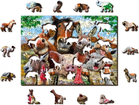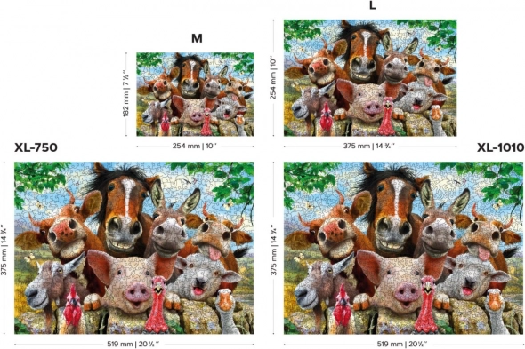 Træpuslespillet med motivet “livet på gården” giver en unik oplevelse af at samle et farverigt billede fyldt med glade dyr. Takket være den præcise laserudskæring af hver brik i en tykkelse på 3–4 mm er samlingen glidende og sjov, og nogle brikker har form som selvstændige figurdele. Det dobbeltsidede tryk gør det muligt at samle efter billedsiden eller efter mønstret på bagsiden.
