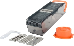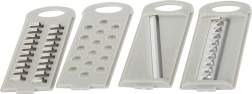 Fire udskiftelige vedhæftninger til forskellige skære- og rivebehov. Tilpasses til forskellige typer grøntsager og frugter.
