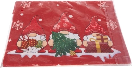 Den markante røde farve, snefnug og tre glade nisser med gaver forvandler ethvert bord til et hyggeligt, festligt sted.
