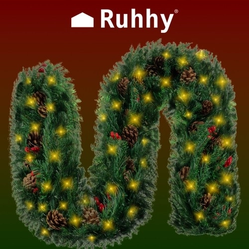Skab en magisk juledekoration derhjemme med en guirlande, der kombinerer premium HQ-udførelse, tætte nåle i dyb grøn og blid LED-belysning. Dekorationen er suppleret med naturlige kogler og røde bær, så den gør indtryk selv uden yderligere pynt. Takket være de formbare grene tilpasser du den nemt til alt fra gelændre til pejs eller hoveddør.