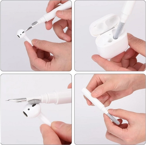 Fjerner støv og aflejringer fra høretelefoner, hvilket hjælper med at forbedre lydens klarhed og bevare korrekt opladning.