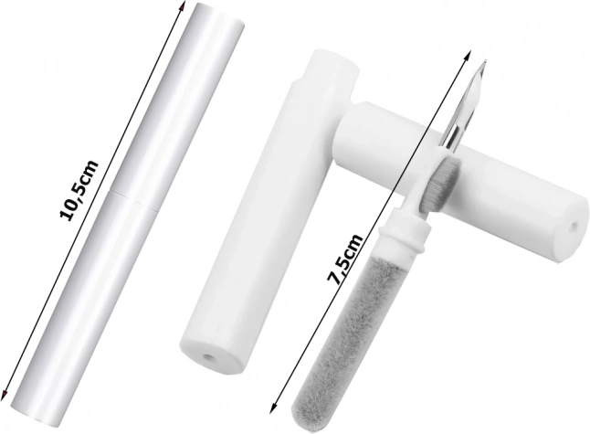 Den praktiske rensepen er designet til præcis pleje af trådløse høretelefoner, smartphones, tablets, bærbare computere og kameraer. Tre forskellige spidser klarer støv, ørevoks og snavs på svært tilgængelige steder, så ren lyd og pålidelig opladning genoprettes.