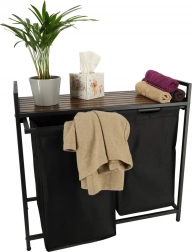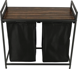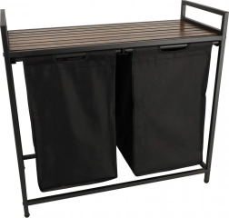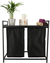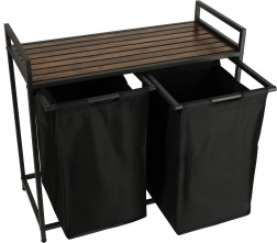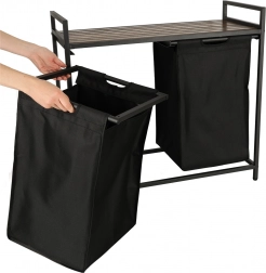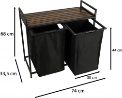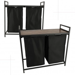 Nyd både praktisk anvendelse og stil med denne todelte vasketøjskurv, der muliggør nem sortering af lyst og mørkt tøj takket være to aftagelige stofposer. Den stabile metalramme sikrer robusthed og holdbarhed.