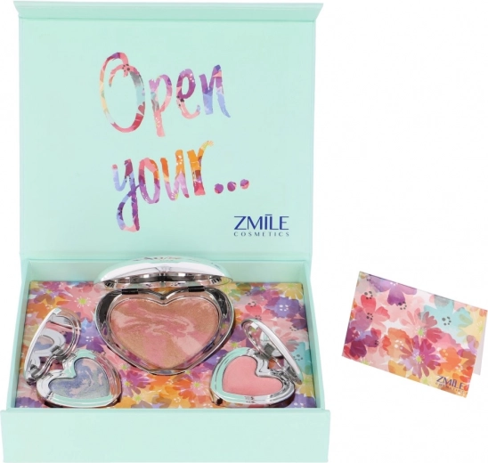 Kosmetiksæt “Sweethearts Pastel Love” – gavesæt indeholder 3 metalsmå hjerter – 1× blush, 1× øjenskygge og 1× læbestift. Dermatologisk testet, opfylder EU’s strenge standarder.