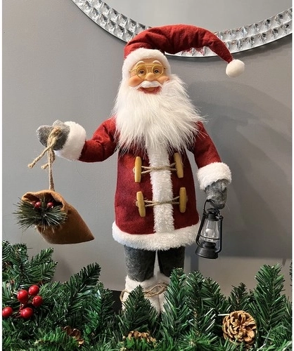 Denne rigt udsmykkede juledekoration af Sankt Nikolaj fanger blikket med det samme. Den røde kappe med hvid pelskant, det lange hvide skæg og de gyldne briller skaber et klassisk udtryk, som hører julen til. Sankt Nikolaj bærer en lampion og har på ryggen en sæk fuld af gaver, hvilket straks skaber en festlig stemning.