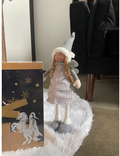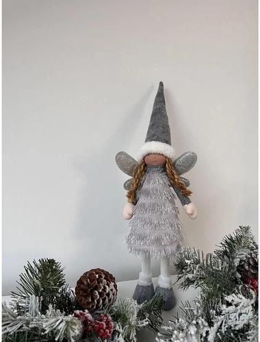 Denne elegante julefigur af en fe/engel i grå, hvid og sølv bringer en hyggelig vinterstemning ind i hjemmet. Glitrende vinger og bløde tekstiler skaber en effekt af trylleri og glæde, som er kendetegnende for højtiden.