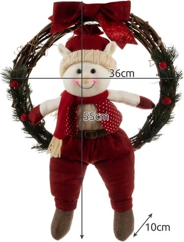 Den charmerende alf i rødt tøj og halstørklæde giver kransen leg og hjemlig varme. Perfekt til familiens julepyntning.