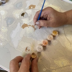 I pakken finder du et lærred på ramme, akrylmaling med nummerering, 3 pensler og ophængningstilbehør. Det er bare at åbne og begynde at male.