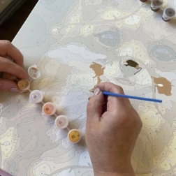 Skab dit eget billede trin for trin – ved at udfylde de nummererede felter med de rette farver opnår du et imponerende resultat uden tidligere erfaring. Maling efter tal er en ideel måde at koble af, slappe af og samtidig udvikle finmotorik og maleteknik.
