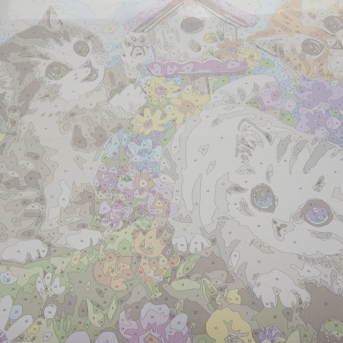De nummererede felter på lærredet svarer til malingsbægrene. Pensler i forskellige størrelser hjælper dig med at male selv fine detaljer på blomster og killinger.